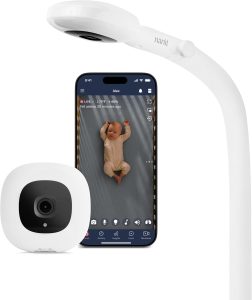 Price: $424-$499 (camera with floor stand, wall mount, or flex stand options) Type: WiFi baby monitor with smart sleep analytics Video Resolution: 1080p HD (1920×1080) Night Vision: Excellent infrared with no red glow Connectivity: WiFi + local network fallback Pan/Tilt/Zoom: Fixed overhead mount (no pan/tilt) App: iOS & Android with comprehensive features ASIN: B0FTSL4FXJ (Floor Stand version)